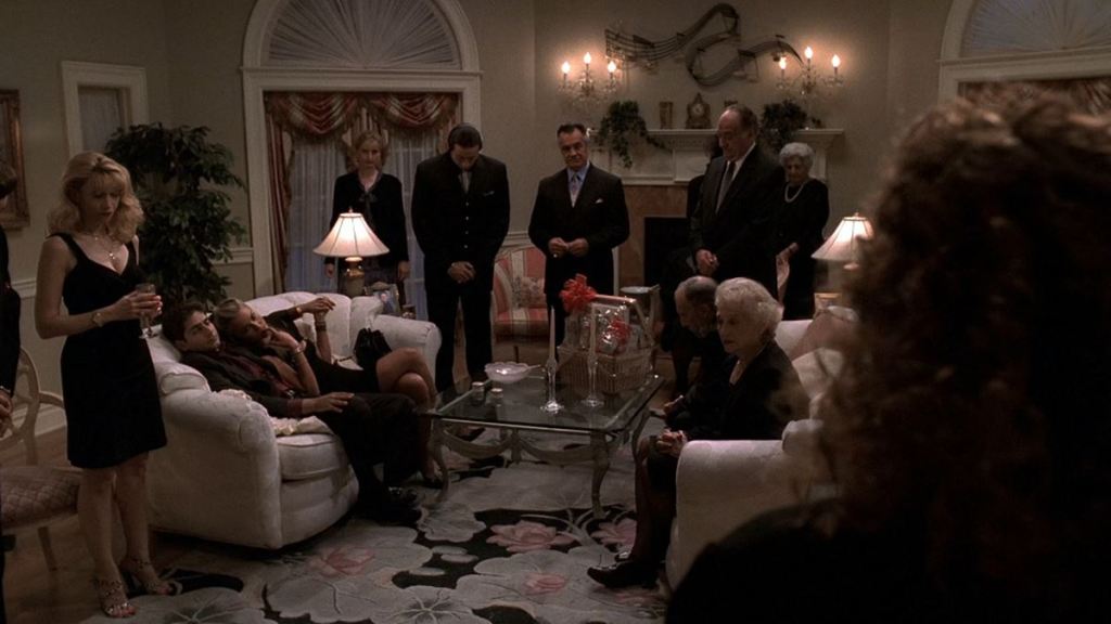 This sculpture features a treble clef and musical notes on an undulating staff. Four welded brackets on the back allow for secure hanging. This piece is featured above the fireplace in the living room of the Soprano Family.