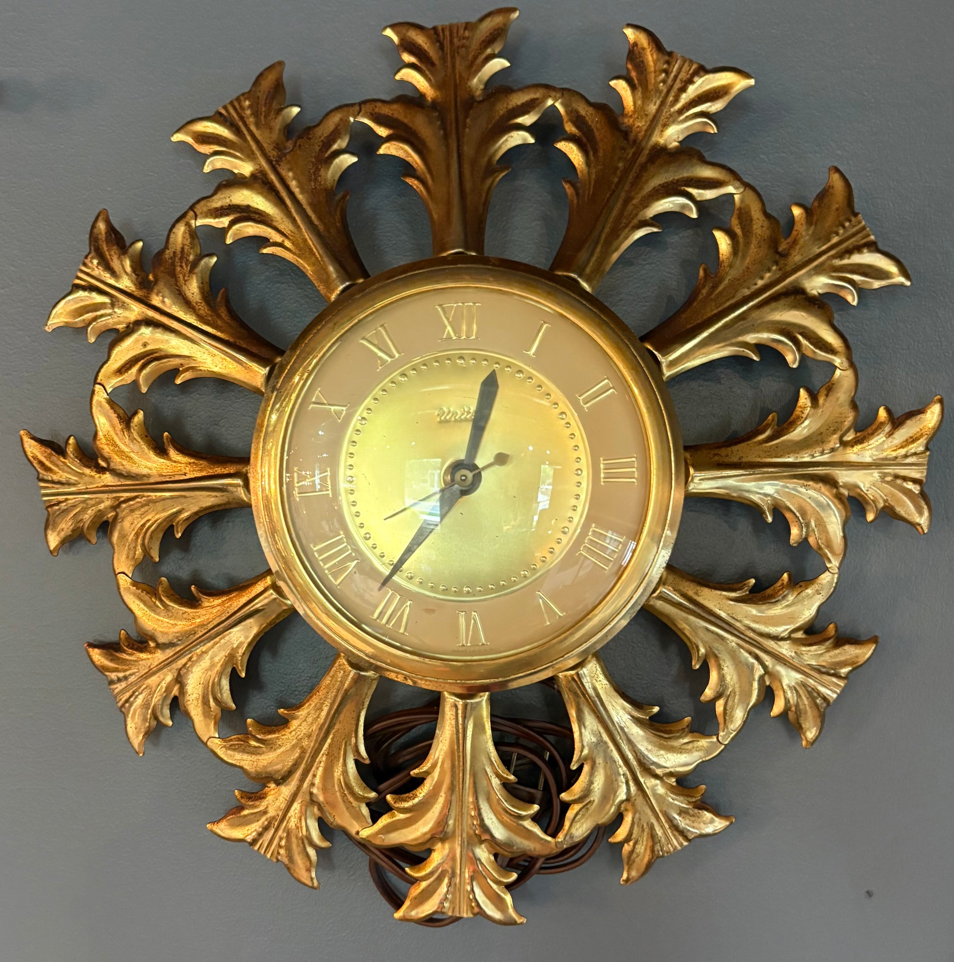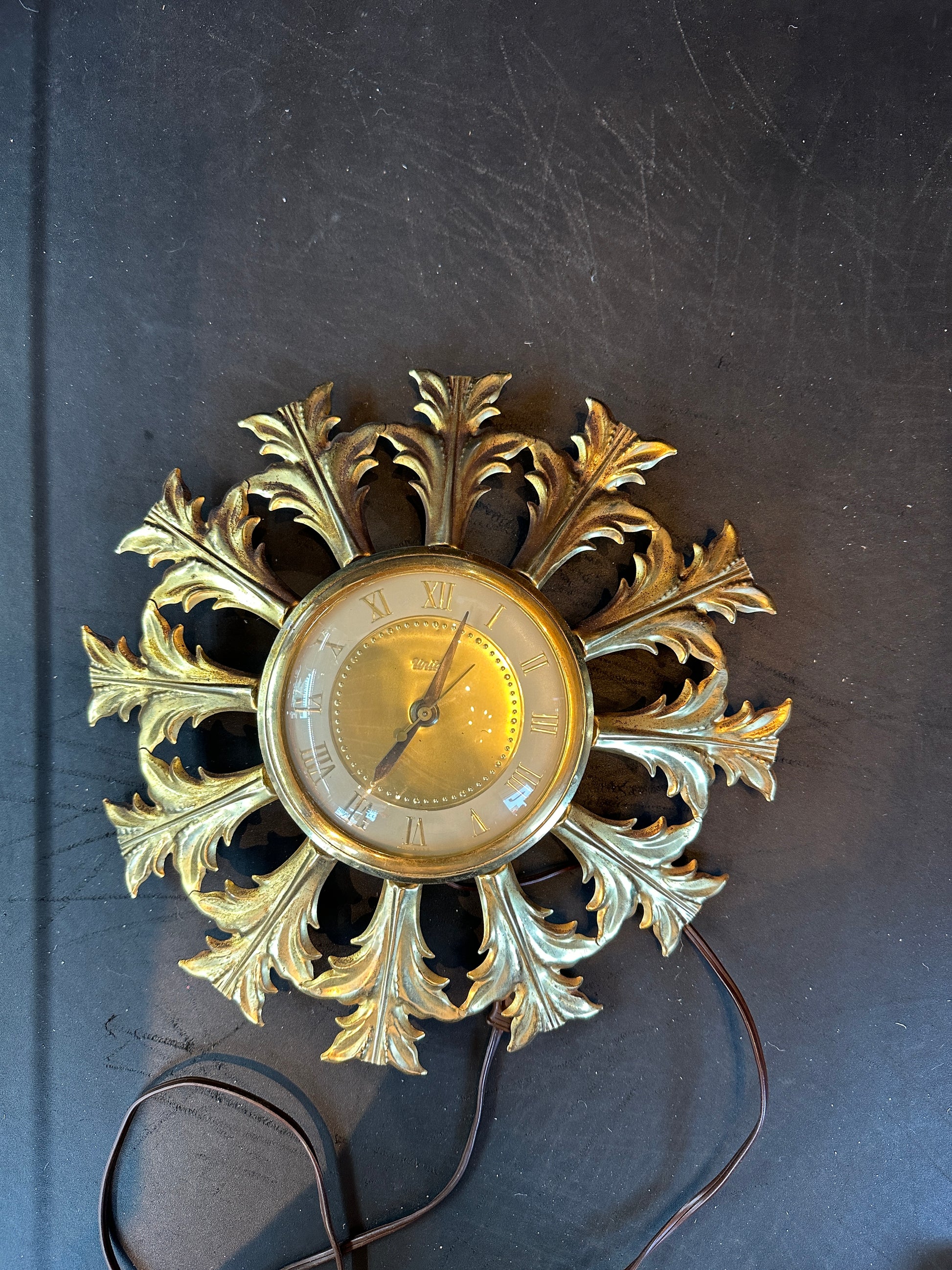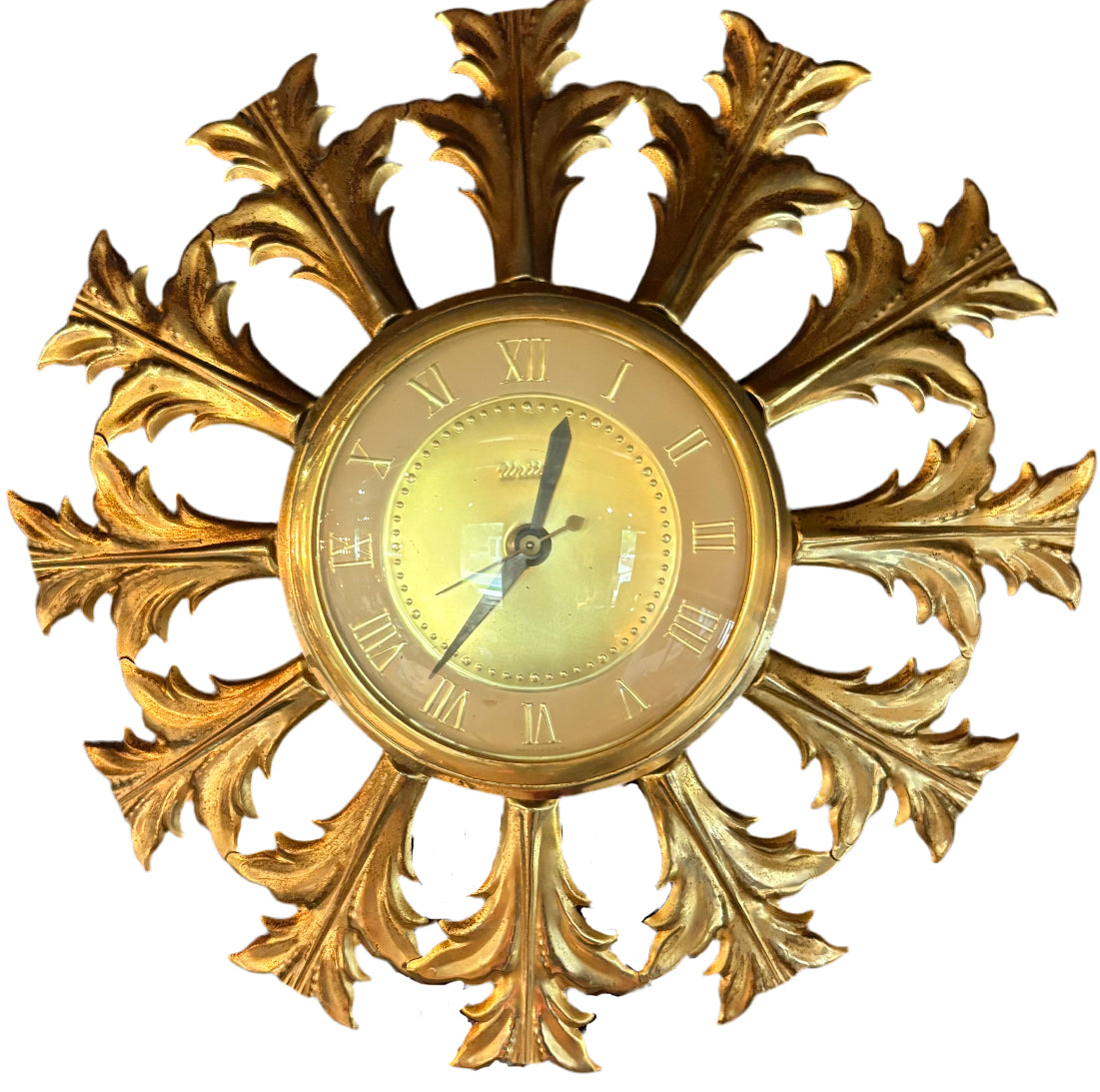 1960s BRASS LEAD STARBURST CLOCK by UNITED