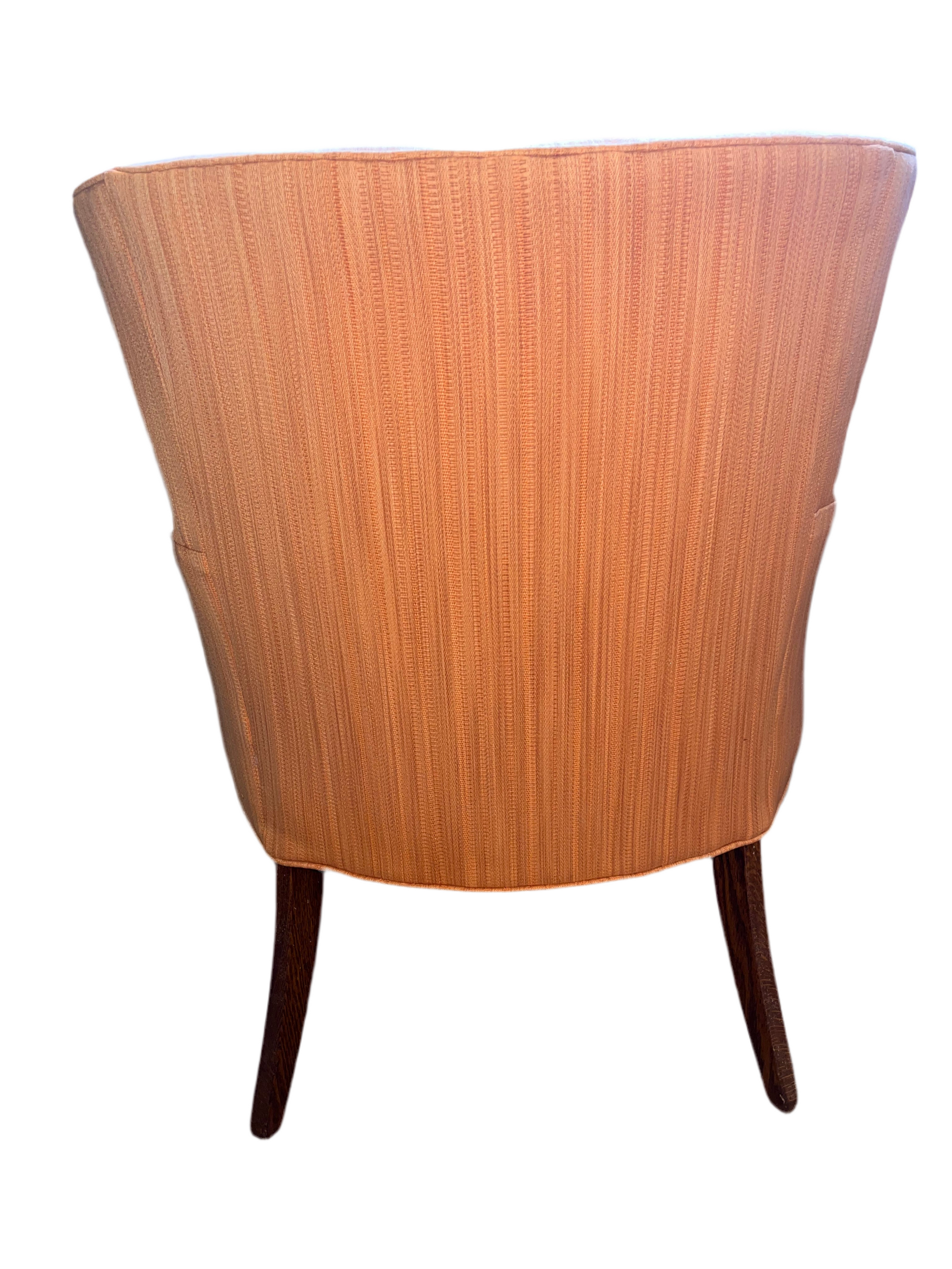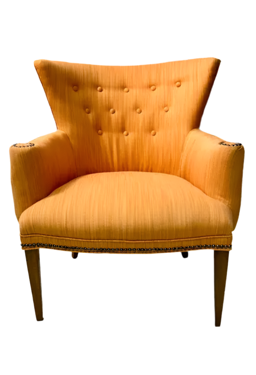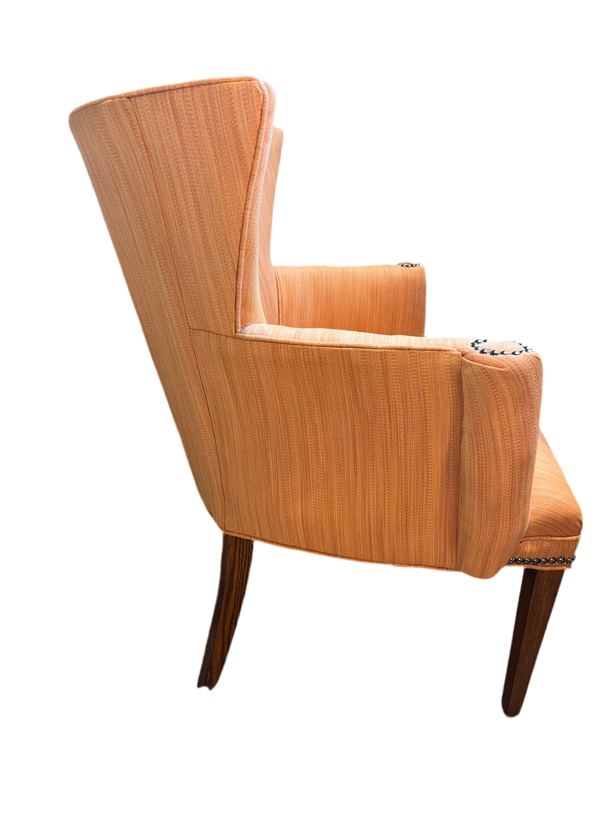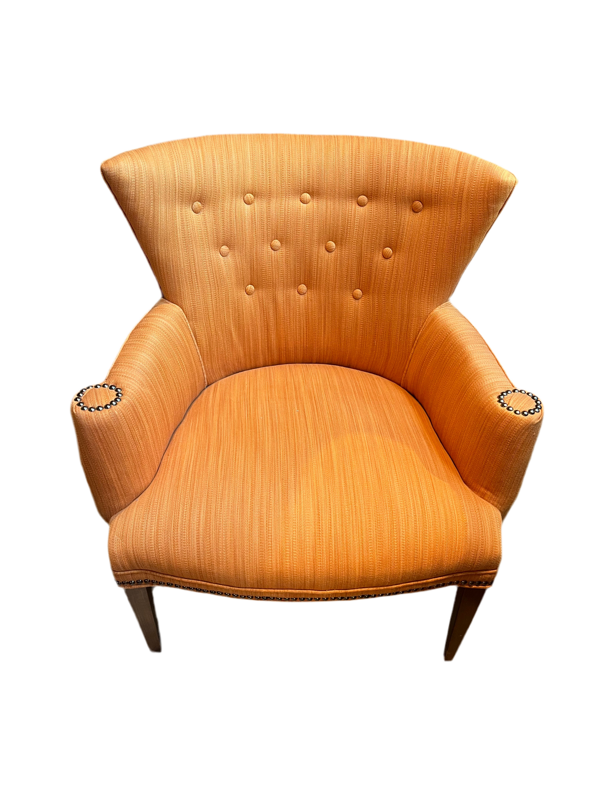 VINTAGE SHAPELY TRANSITIONAL LOUNGE CHAIR IN SUNSET ORANGE. GENTLY USED, IN GREAT WELL MAINTAINED CONDITION.