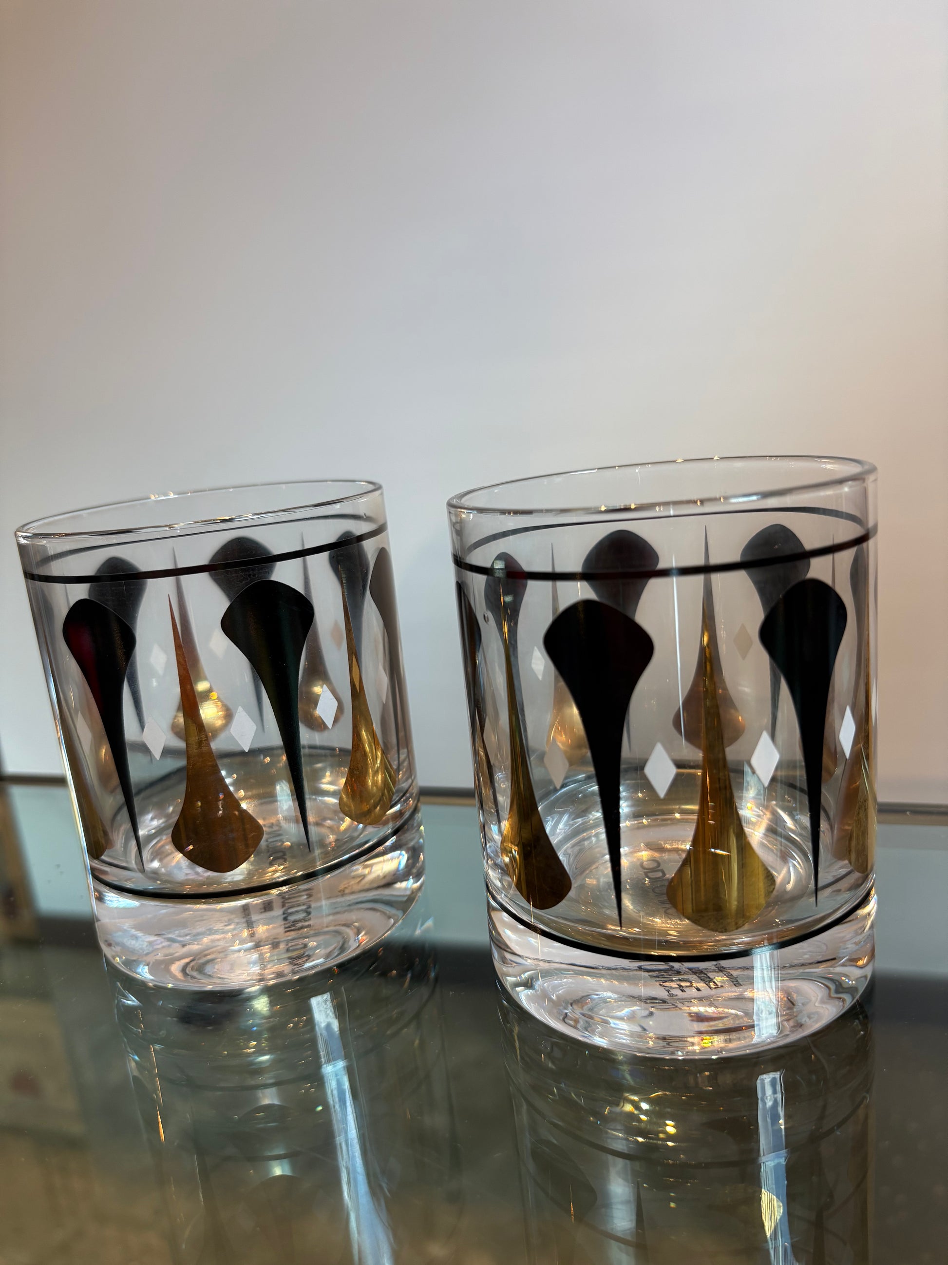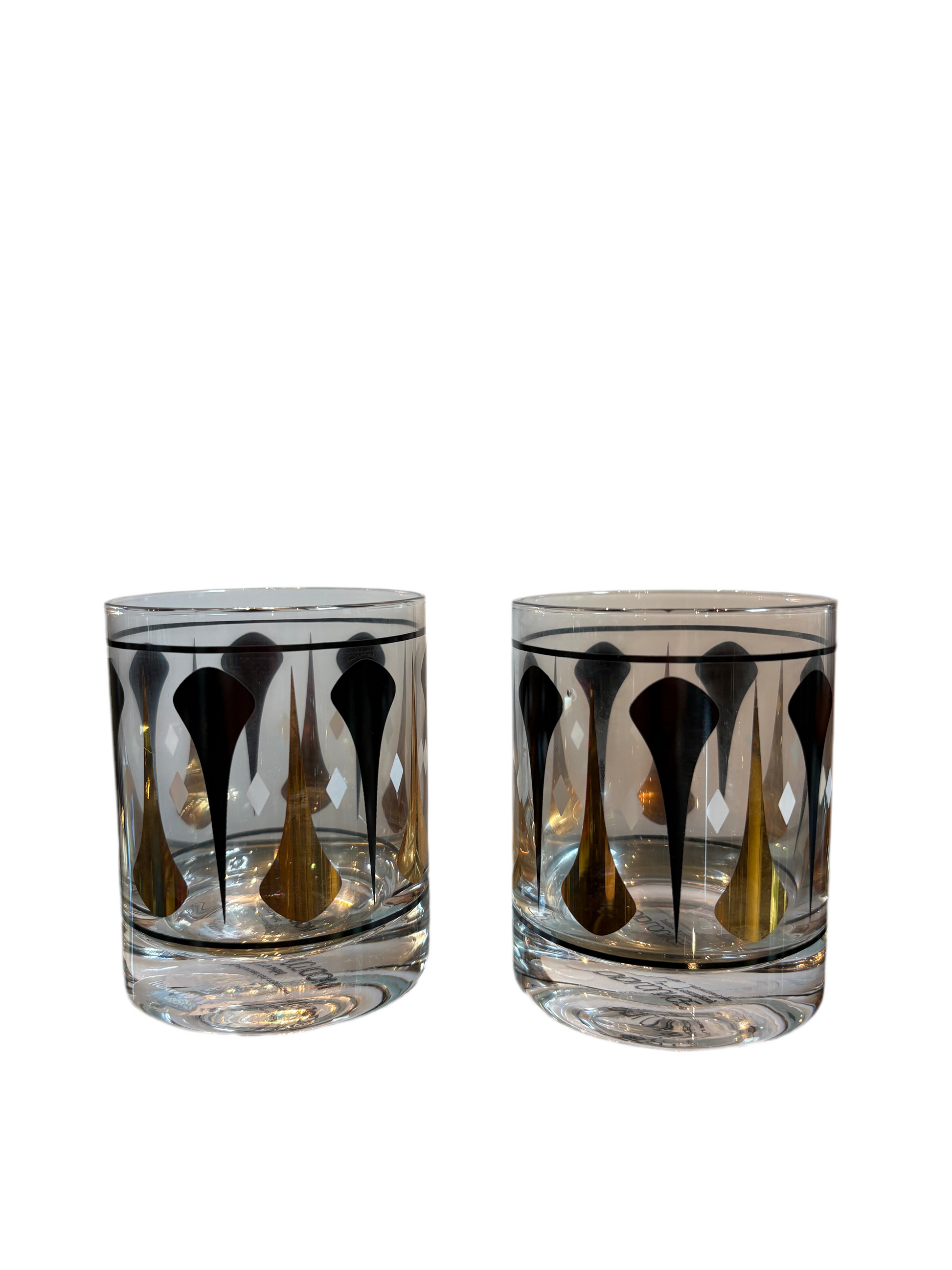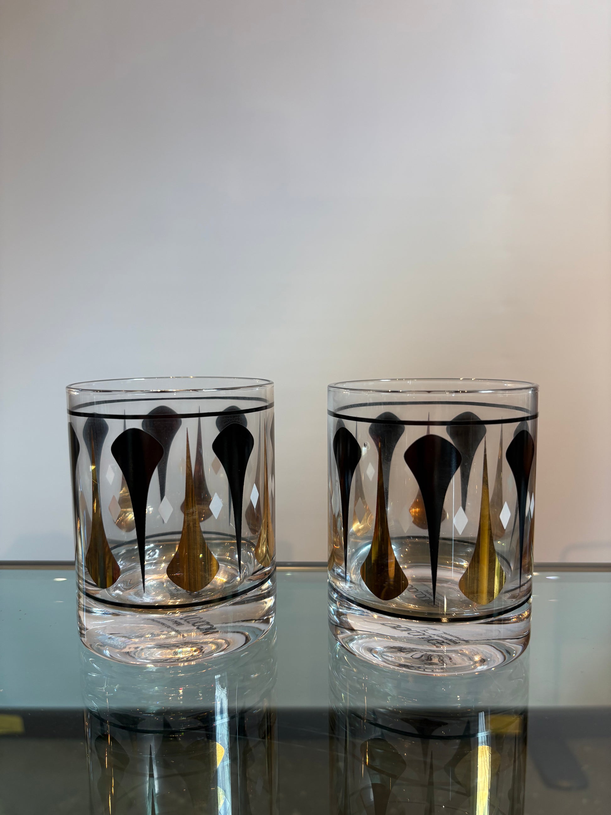 Set of Two black and gold Mid-Century Modern style whiskey glasses