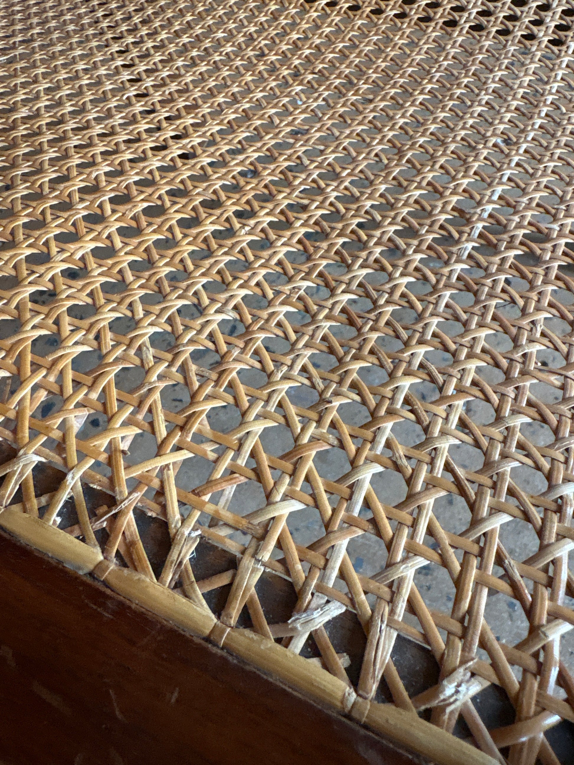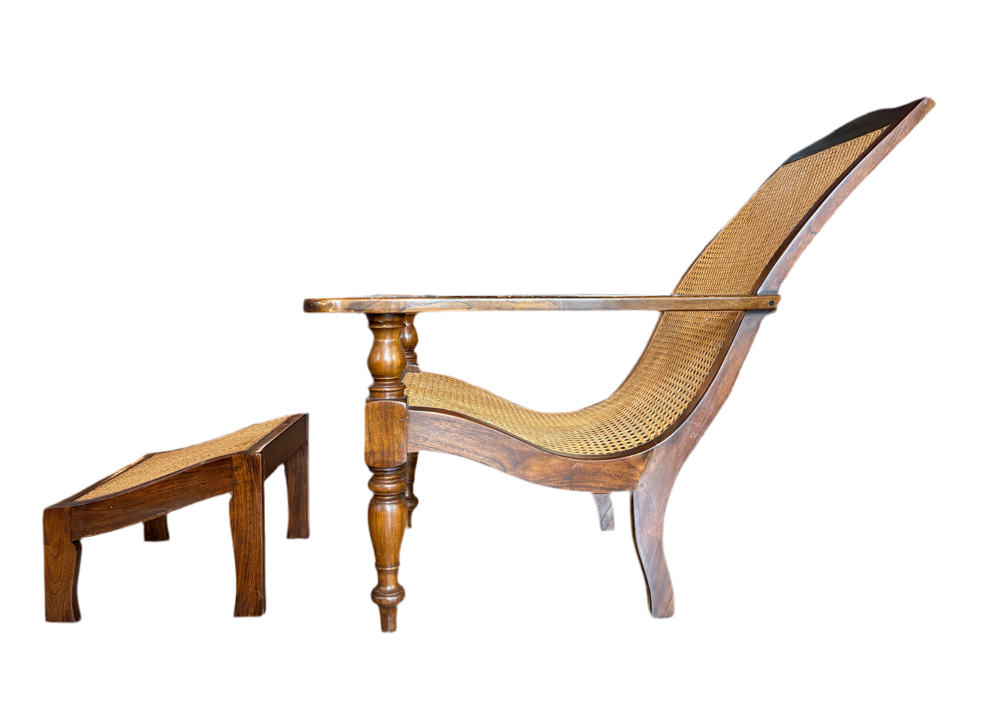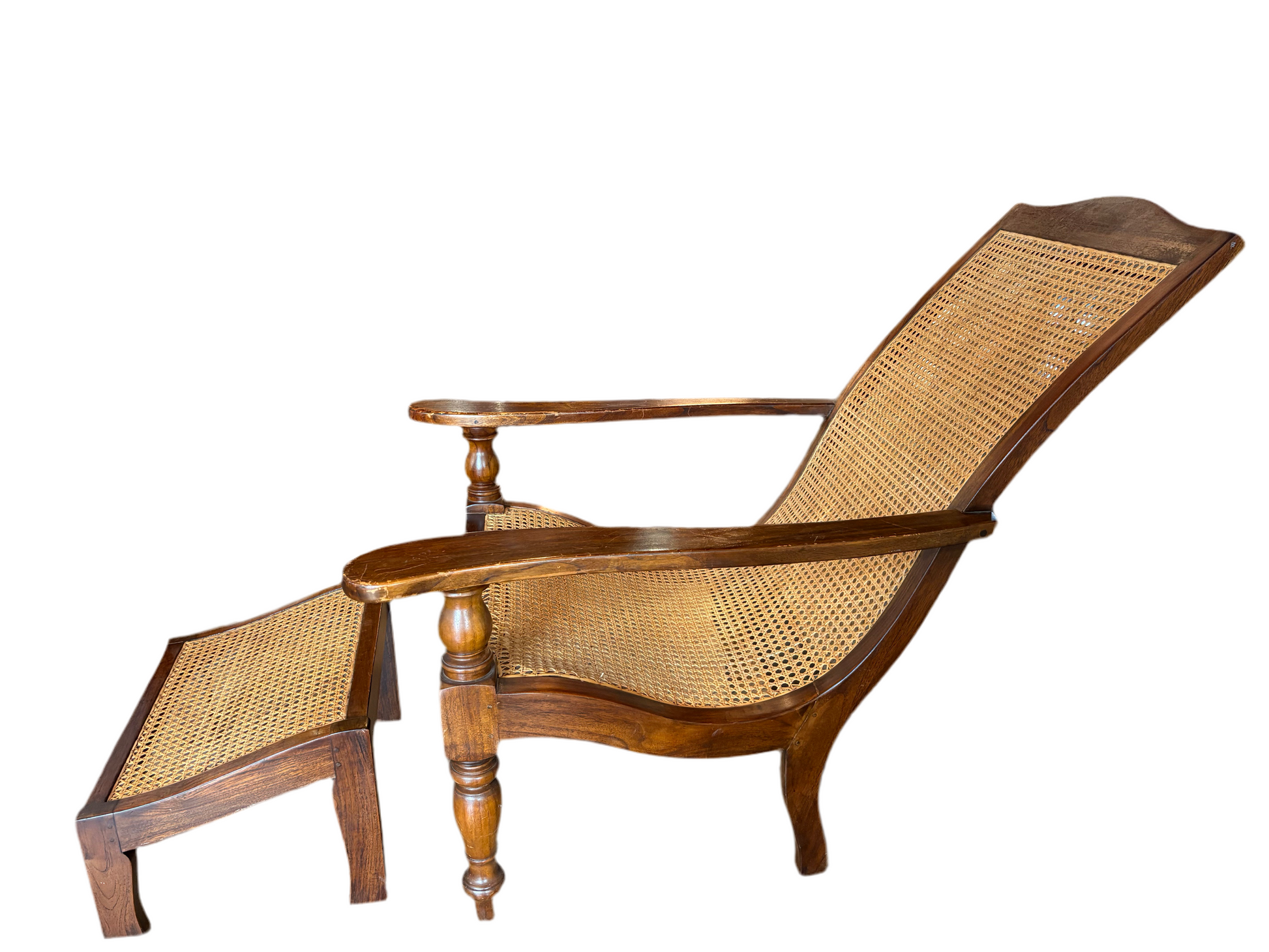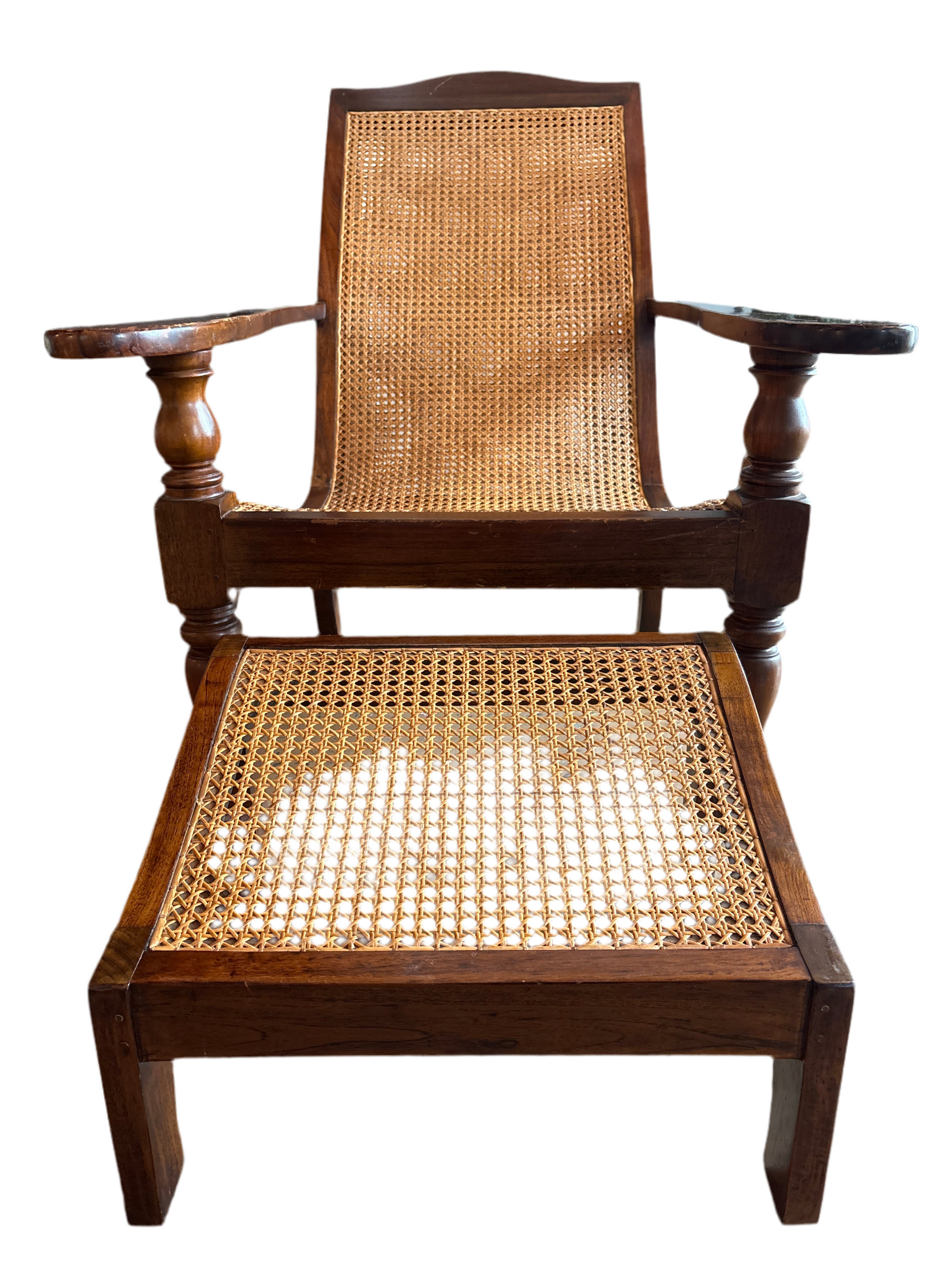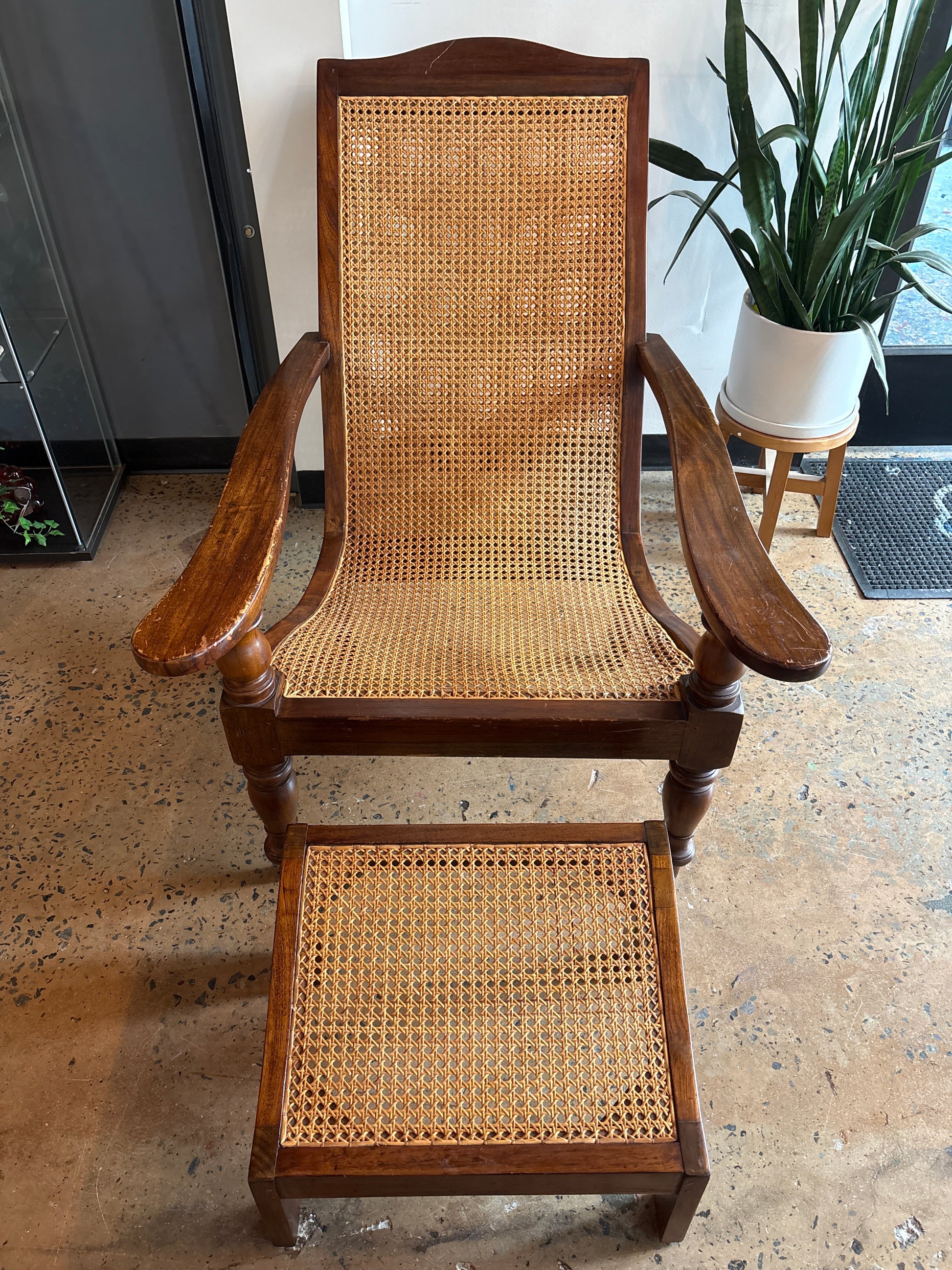BRITISH COLONIAL CANE LOUNGE CHAIR & OTTOMAN