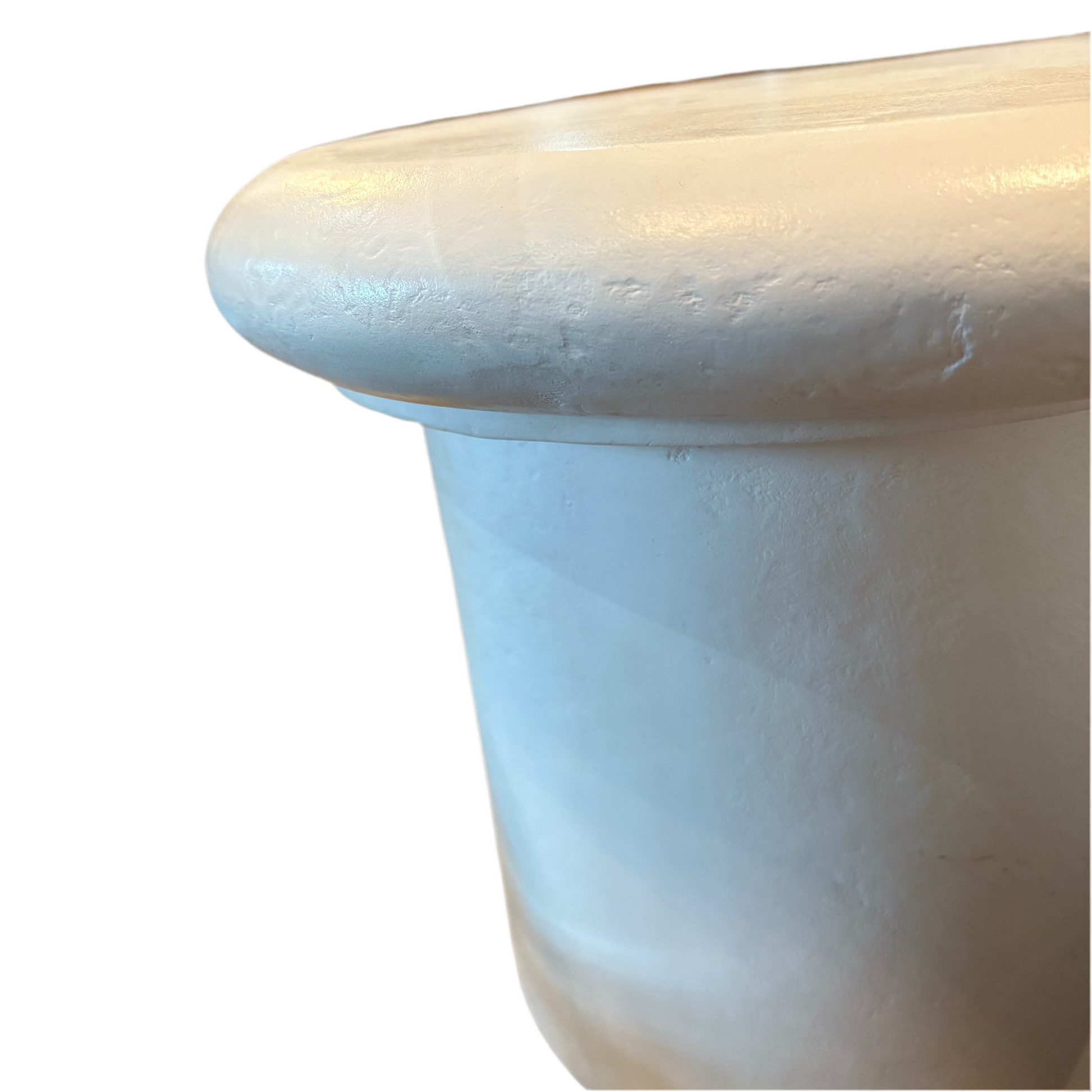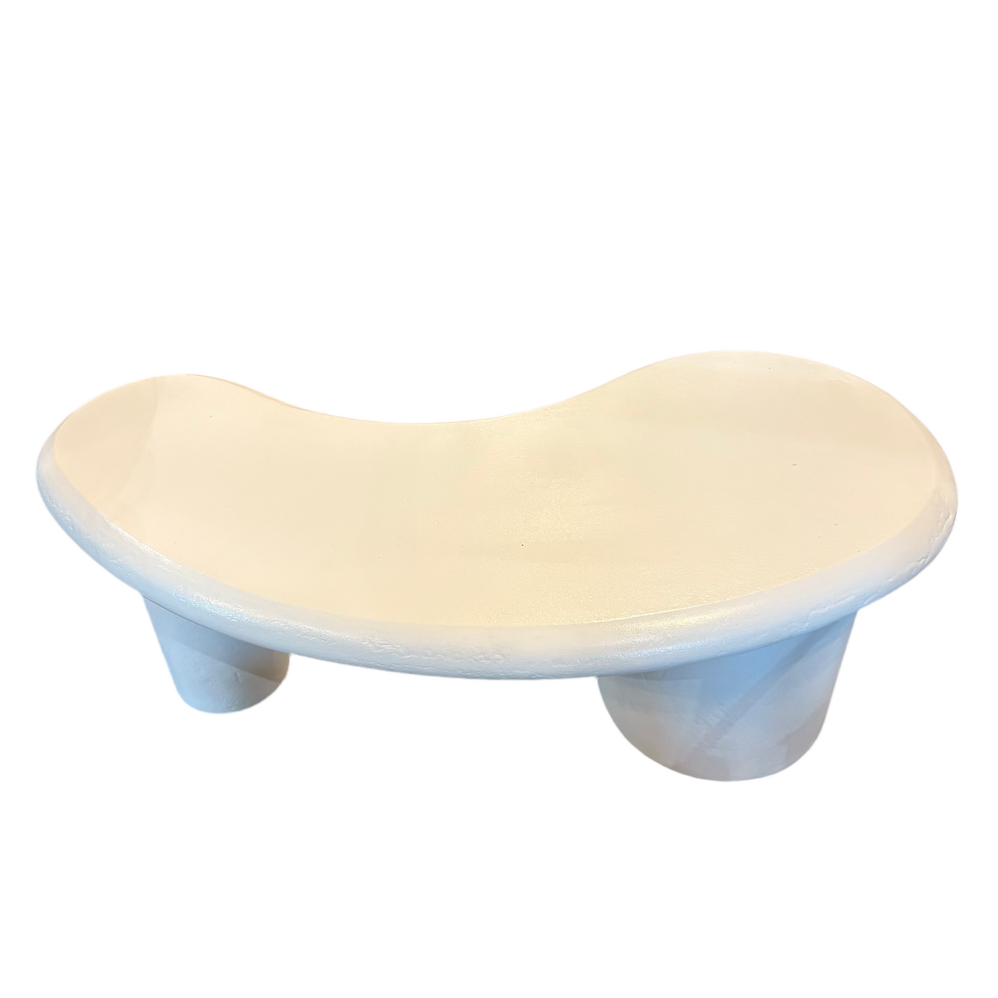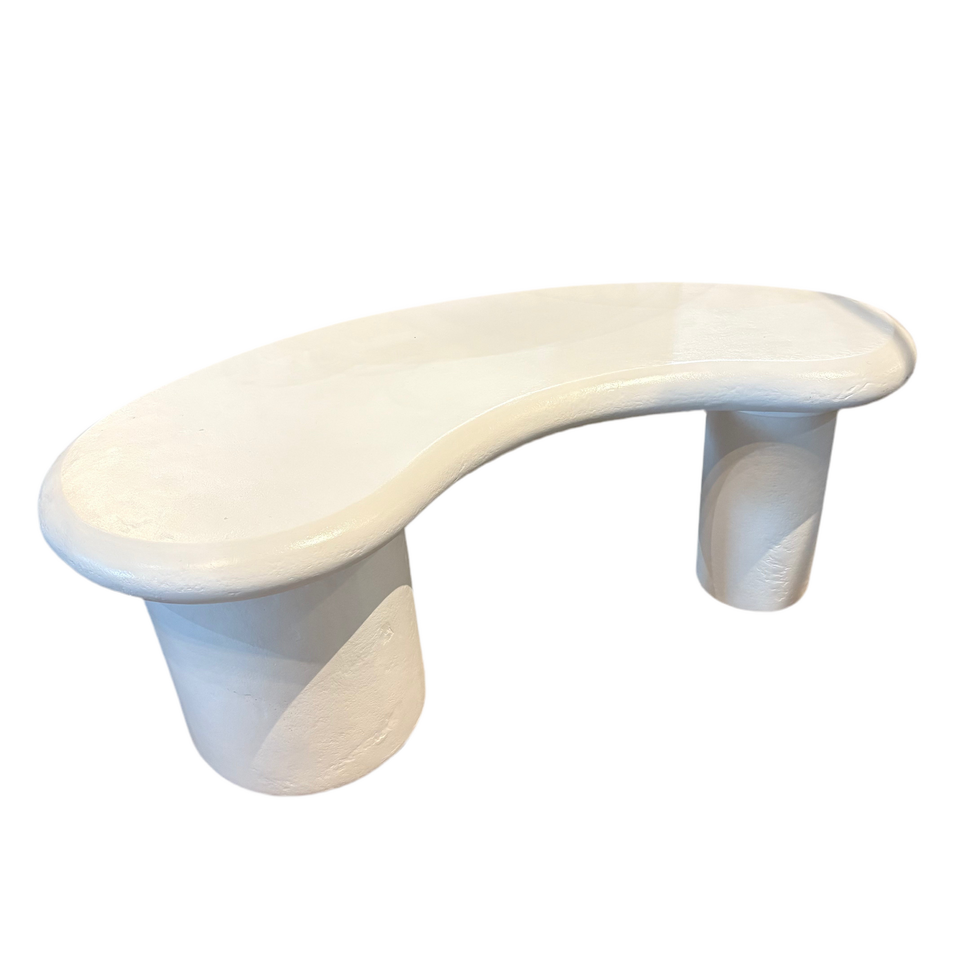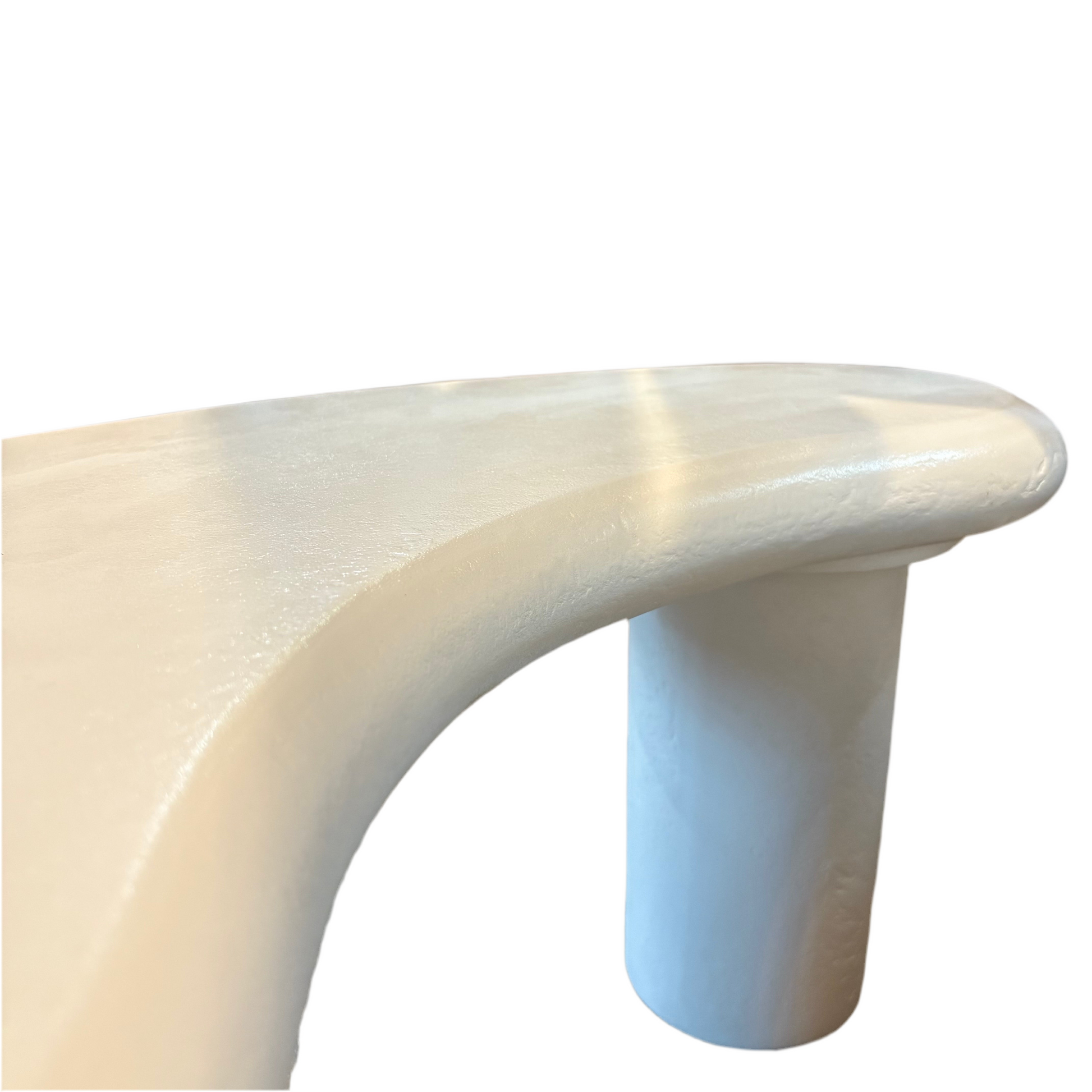 The Stella Coffee Table has a rounded, amorphous shape crafted entirely from plaster white concrete. This elongated coffee table is a study in minimalism, making it a stylish and timeless choice for your home.