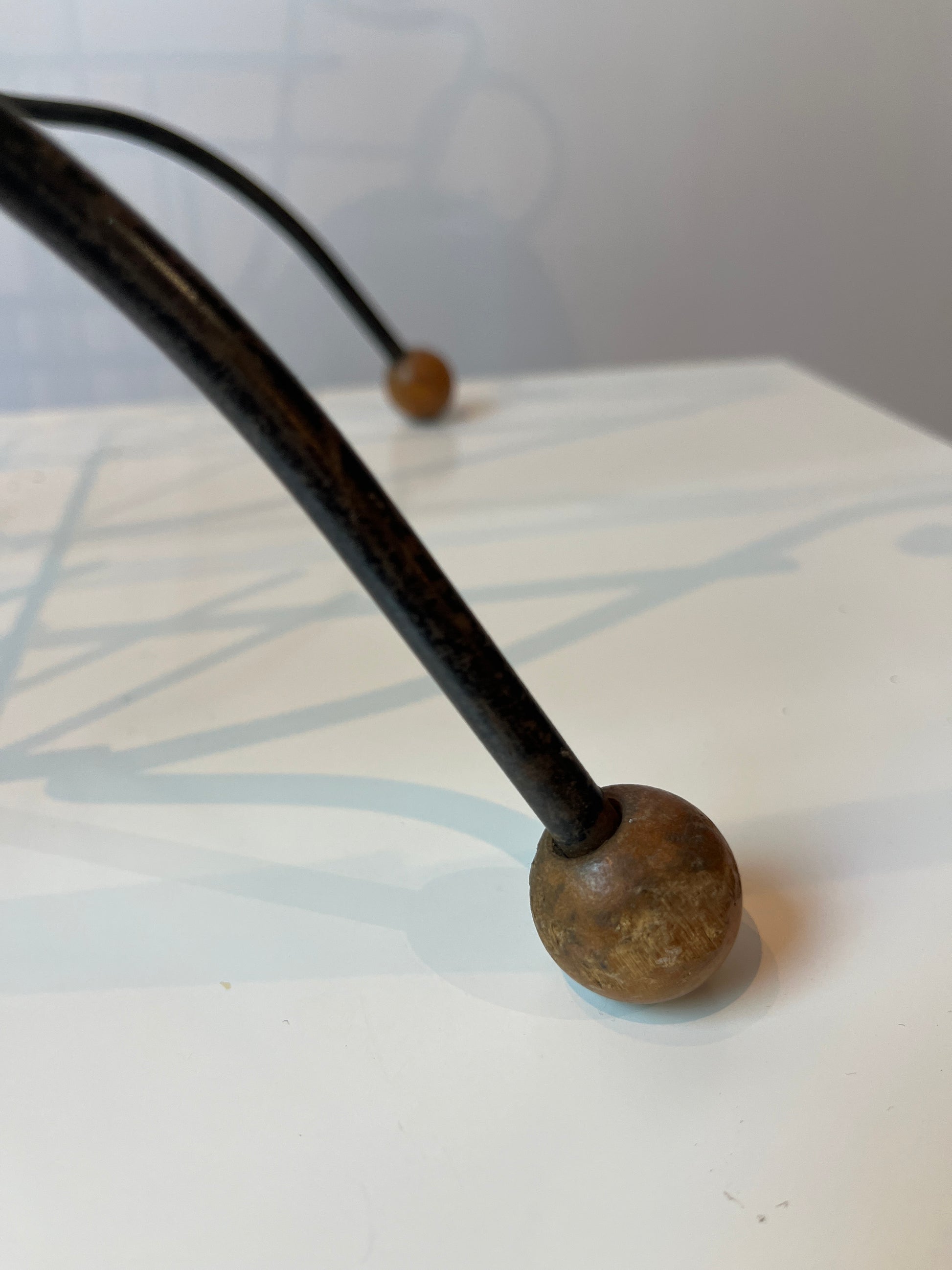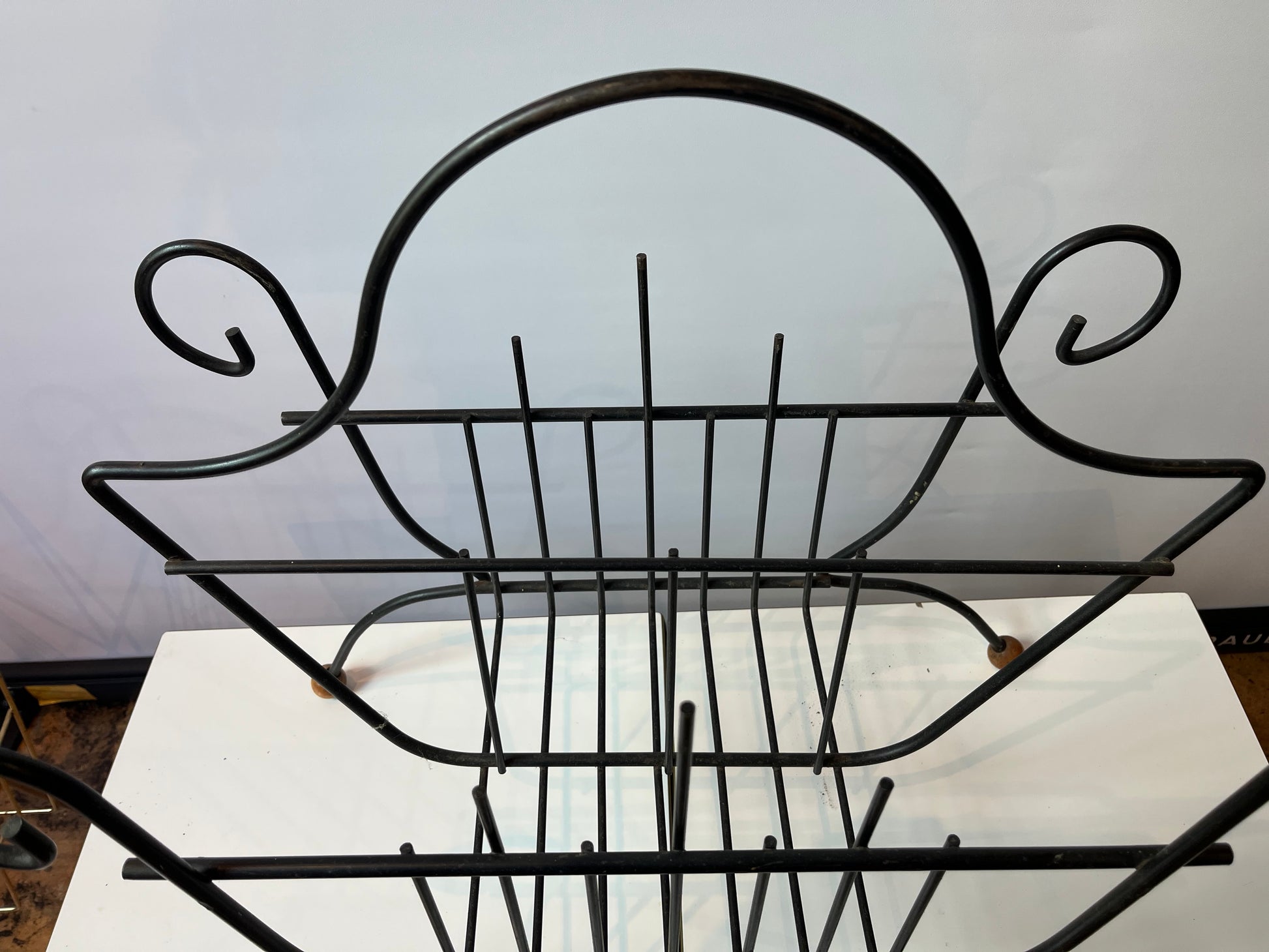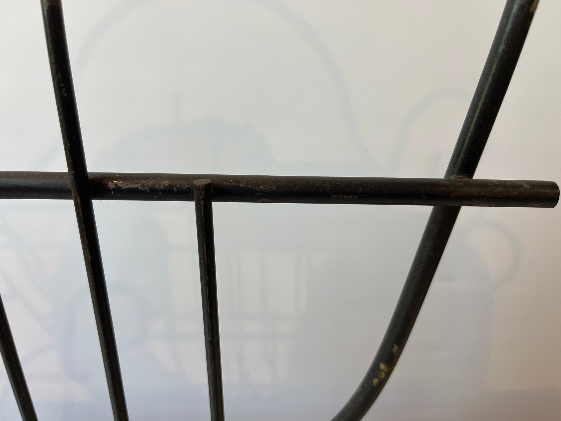 10” W x 21” L x 21.25” H VINTAGE IRON MAGAZINE RACK WITH WOOD STOPPERS