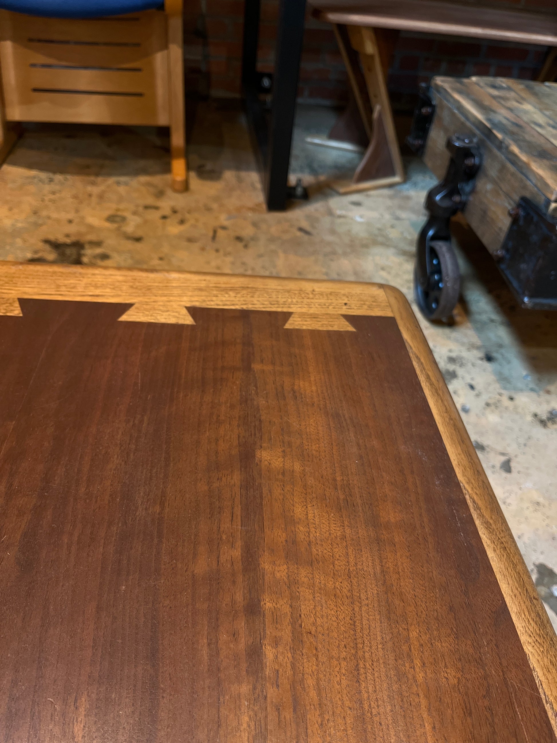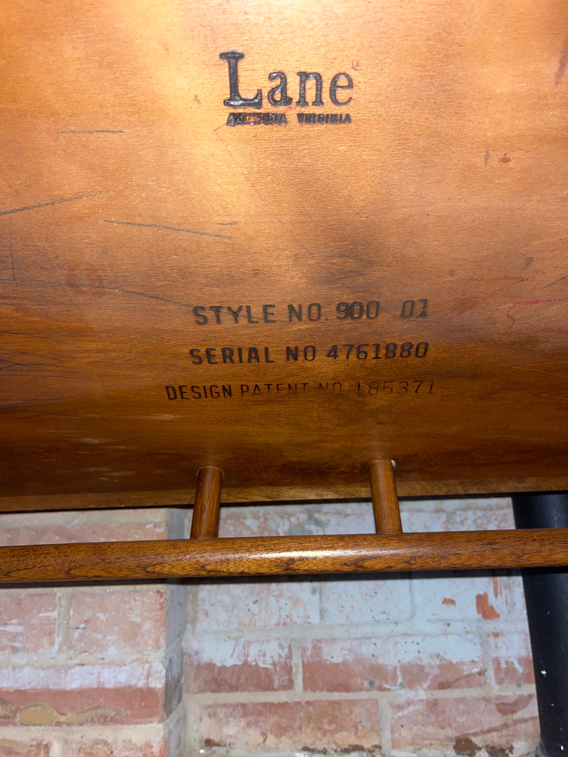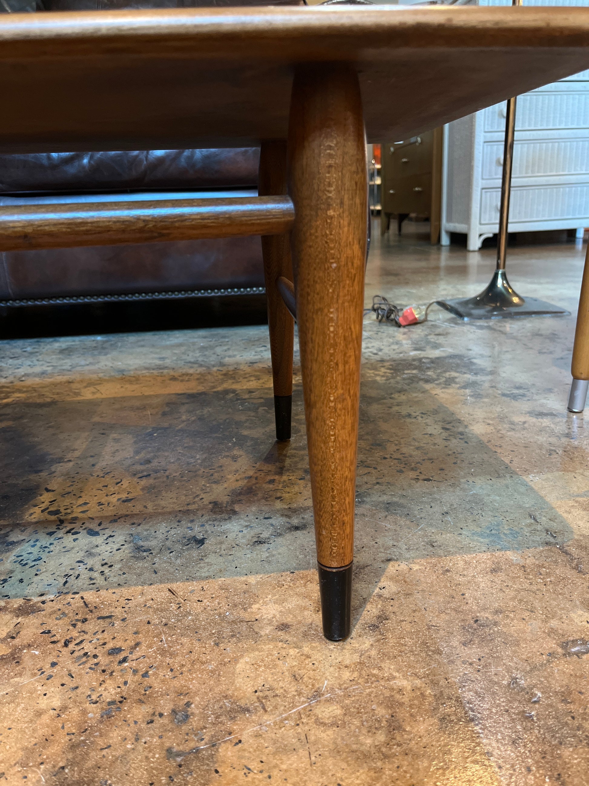 VINTAGE 1960s LANE ACCLAIM COFFEE TABLE IN FRUITWOOD WITH A DOVETAILED INLAY DESIGN AND TAPERED LEGS. TABLE CONTAINS A FEW MINOR SCRATCHES AND IMPERFECTIONS AS PICTURED, WHILE STILL HAVING AN OVERALL APPEARANCE OF VERY GOOD CONDITION.