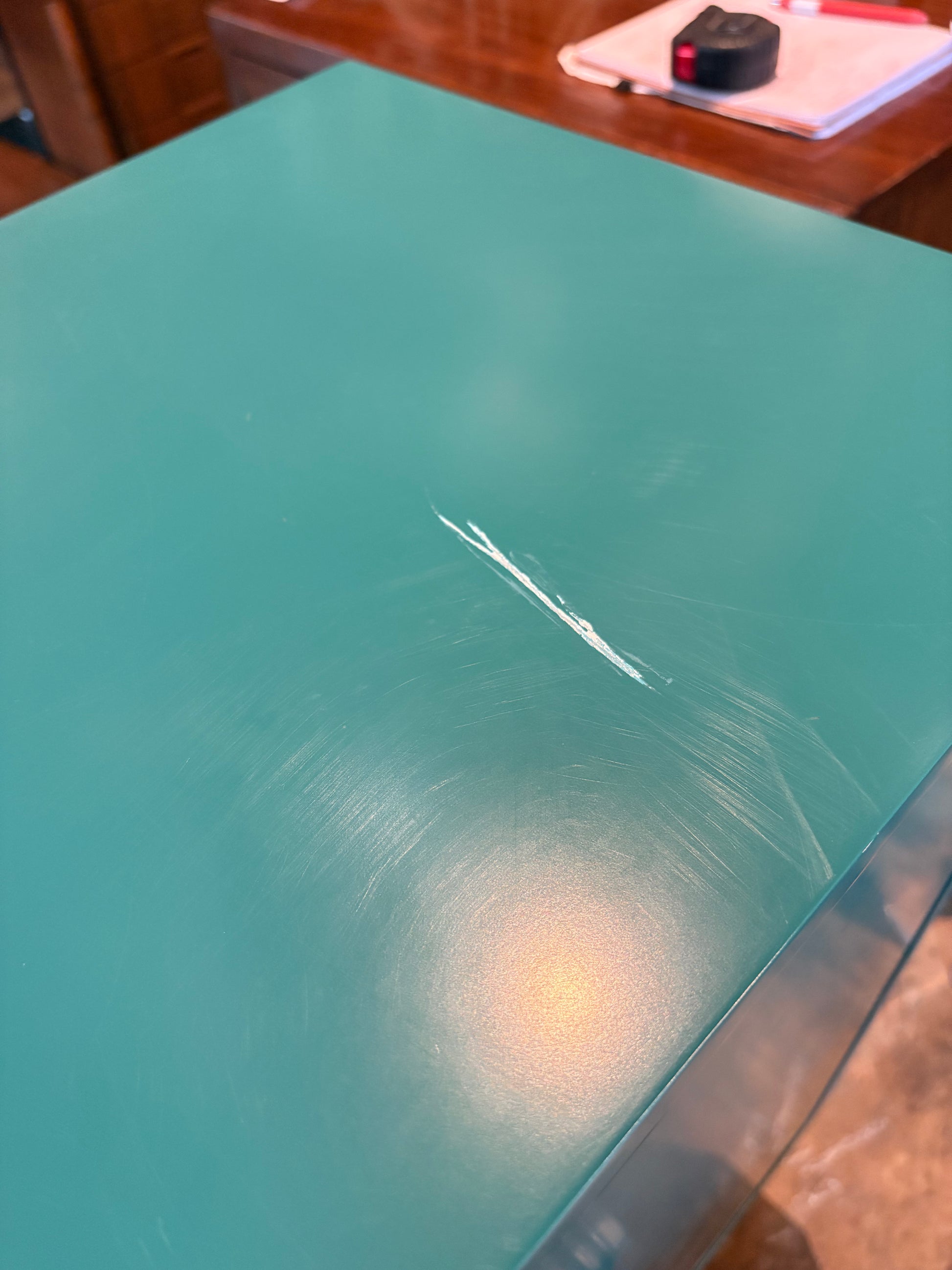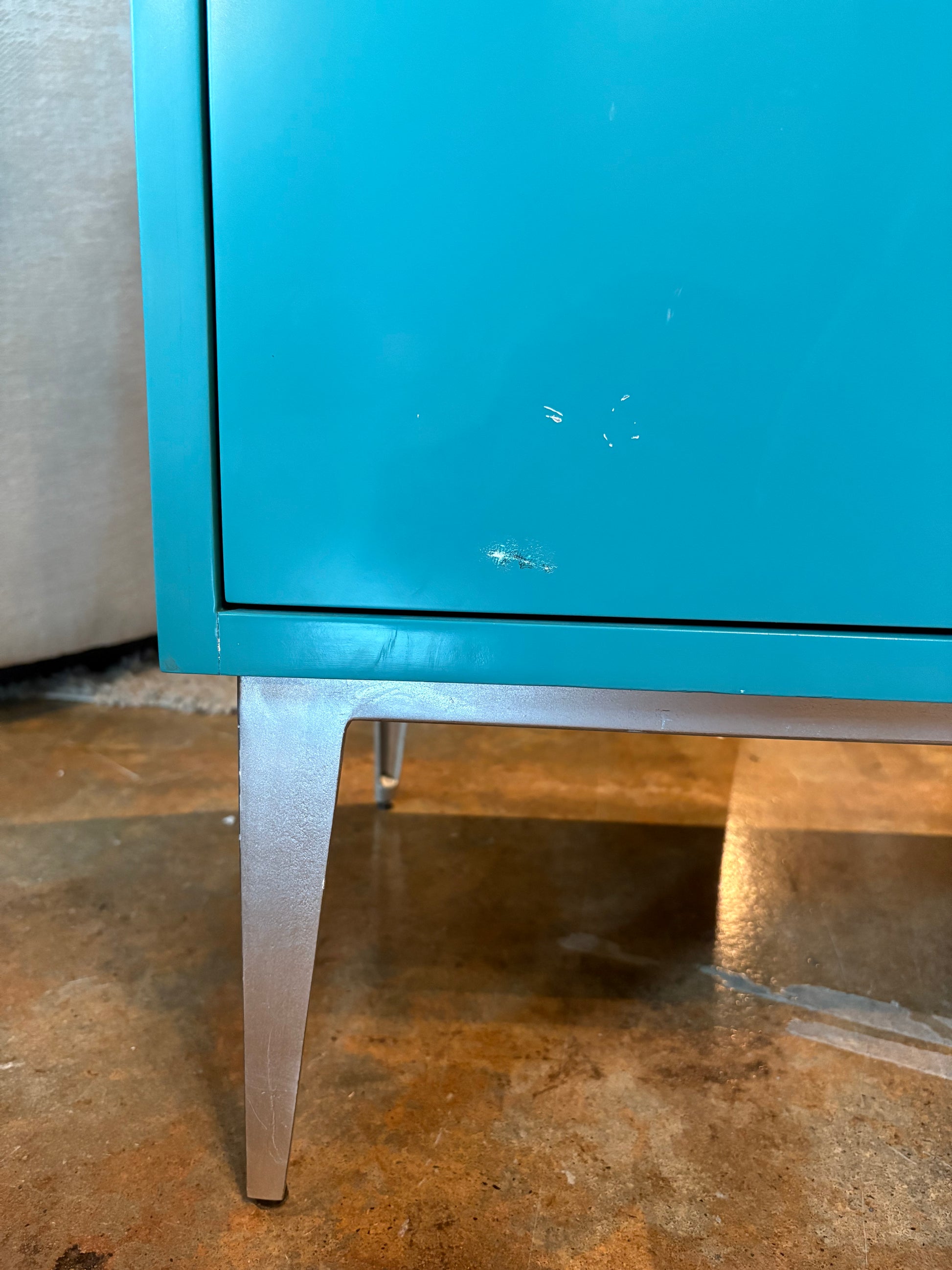 Cabinet is in fair used condition. Scratch on top of cabinet and bottom left corner (see photos).