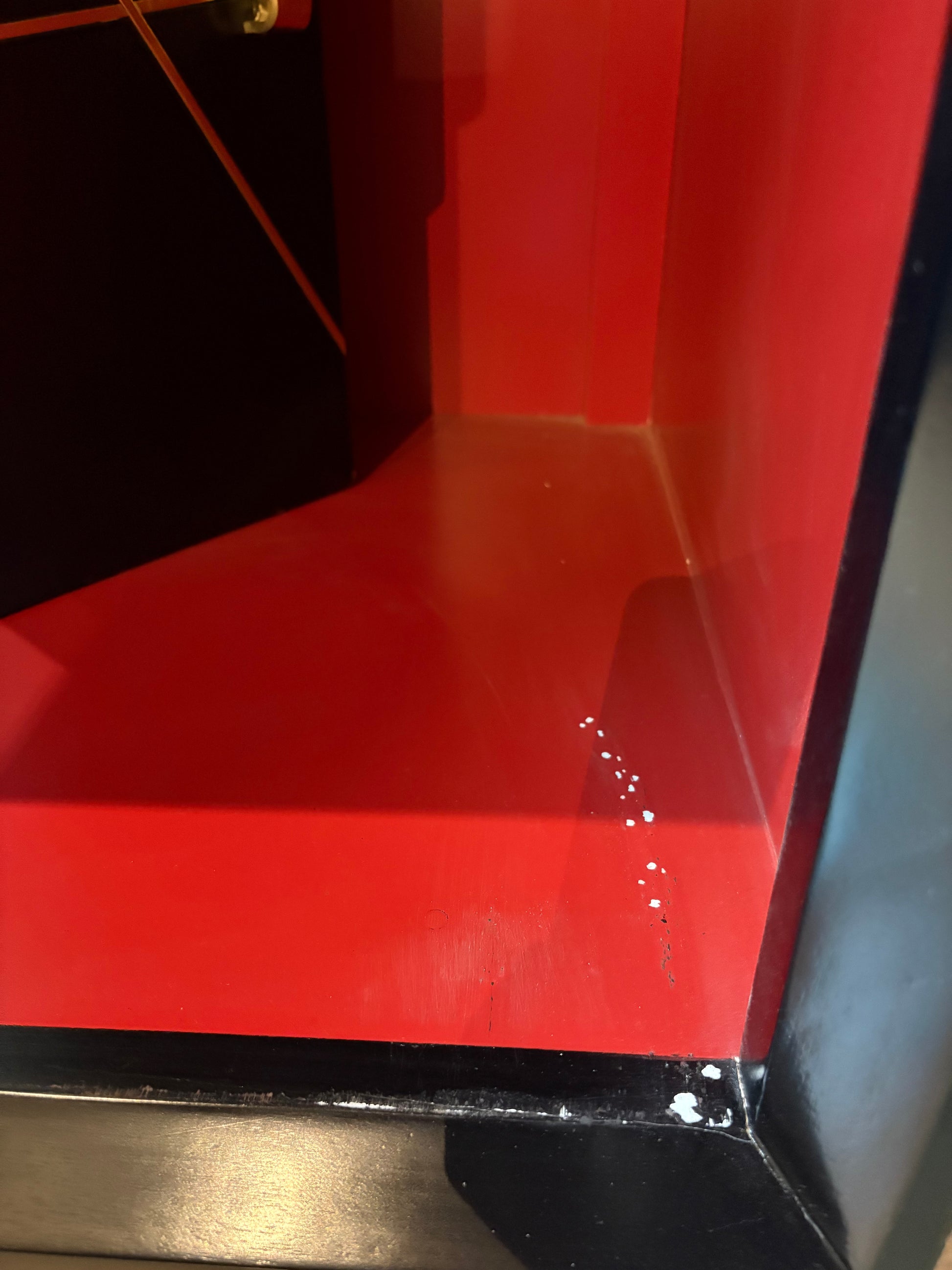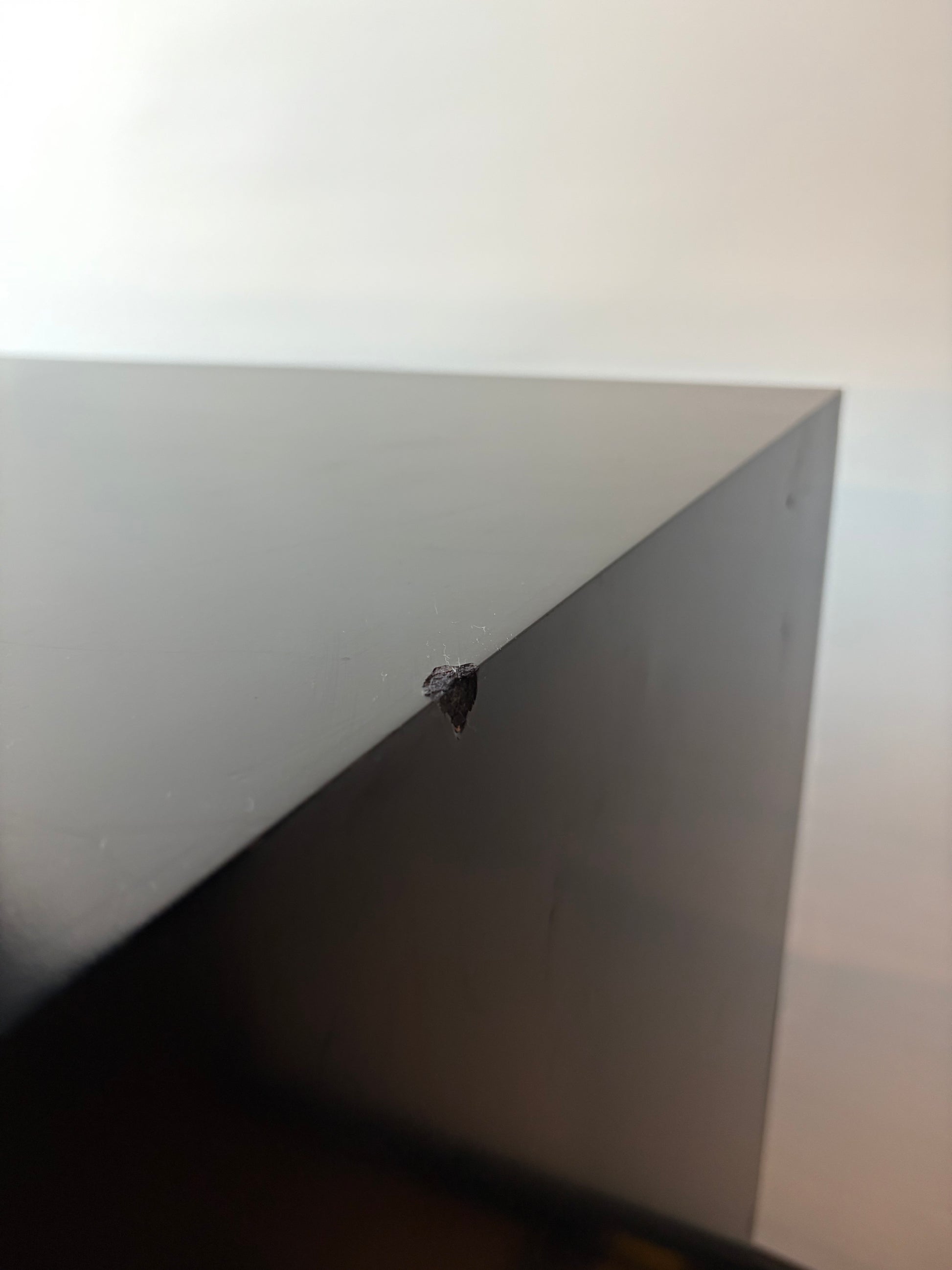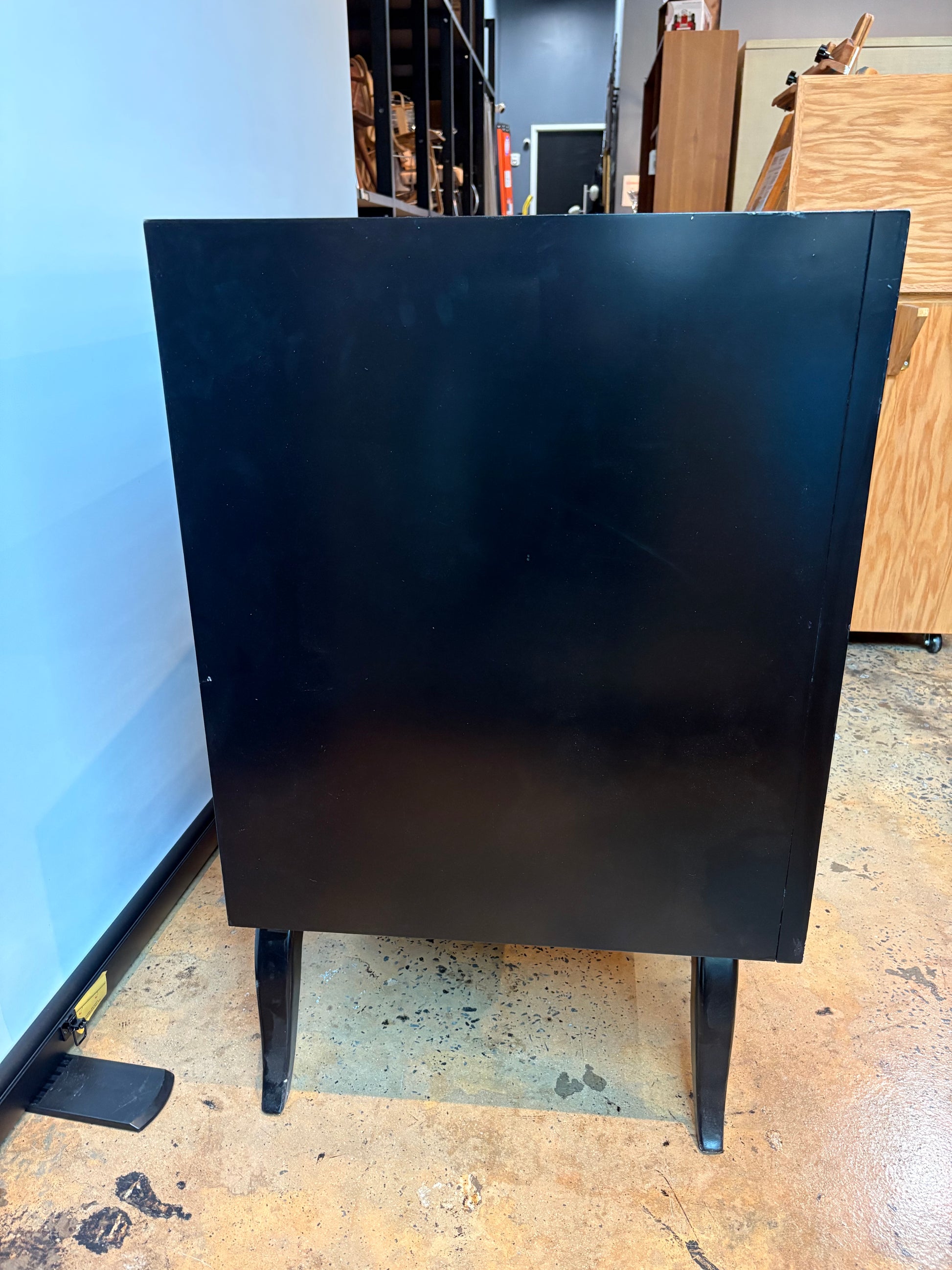 Cabinet is in fair used condition, with a small chip on the top right side, as well as some scuffs and bruises on the outside as seen in the photos.